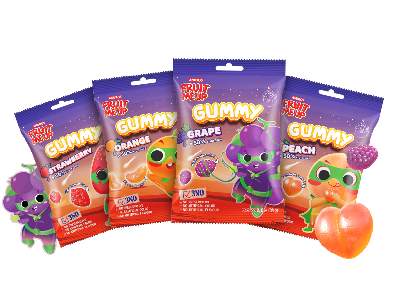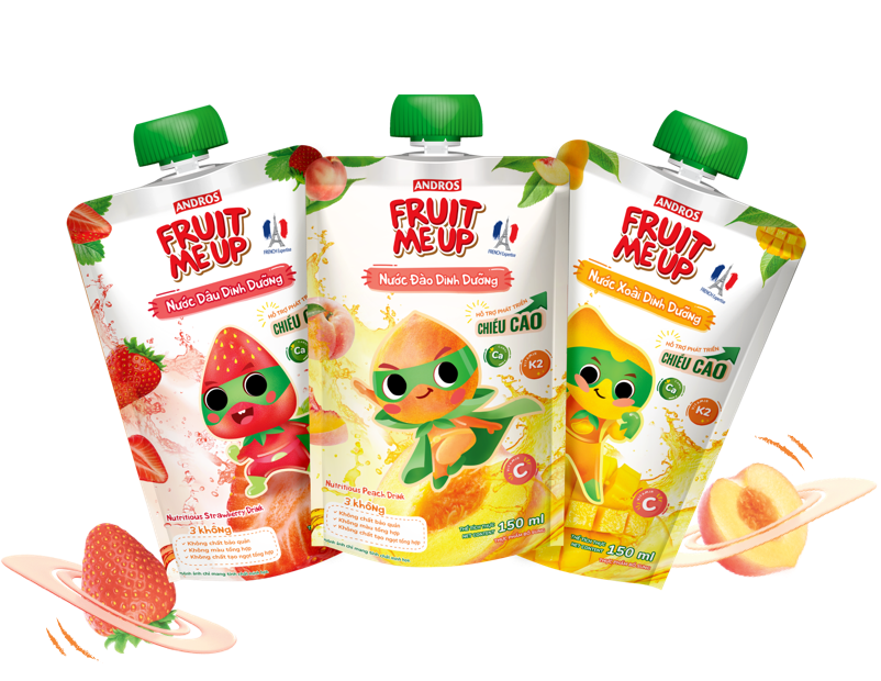 Fruit Me Up được sản xuất bởi Andros – là tập đoàn đa quốc gia của Pháp, với những giá trị đáng tự hào hơn 100 năm trong ngành công nghiệp chế biến, đặc biệt là sản phẩm từ trái cây. Các sản phẩm từ trái cây đạt chuẩn Global G.A.P, mọi sản phẩm đều được chế biến dựa trên bí quyết lâu đời từ Pháp. Chúng tôi mong muốn mang đến cho khách hàng những sản phẩm từ trái cây thơm ngon nhất, đặc biệt là các sản phẩm dành cho trẻ nhỏ với thương hiệu Fruit Me Up, tuân theo quy trình sản xuất và kiểm soát chất lượng nghiêm ngặt của trụ sở chính tại Pháp, đảm bảo phù hợp với các tiêu chuẩn quốc tế.